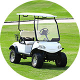 カートは2人乗りの乗用カートが基本で、原則、フェアウェイ走行が可能。自分のボールの場所までスムーズに行けるので、それだけプレー時間も短縮できるし、快適にラウンドできます。